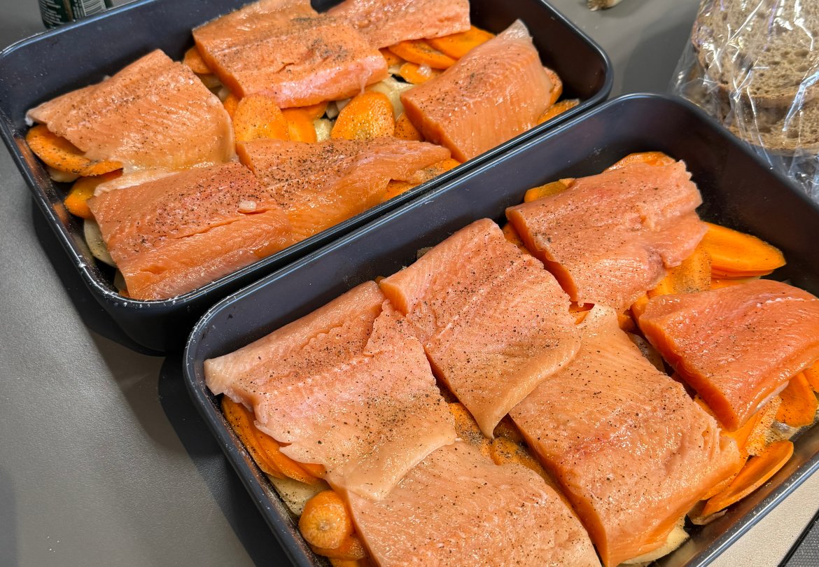 På menyen sto det selvfølgelig kvalitet – og vi ønsker samtidig å rette en stor takk til Fjellfisk, som sponset fisken til dagens matlaging. Det setter vi stor pris på, og det er helt i tråd med fokuset på gode råvarer og riktig næring for idrettsutøvere.